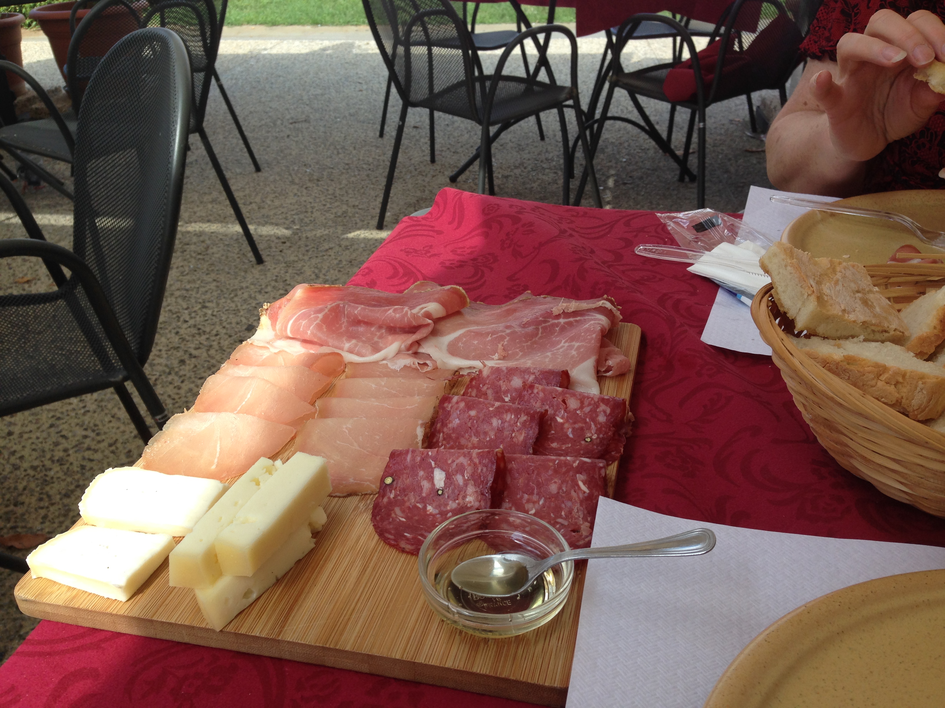 Booking.com showed what looked like a lovely hotel with vacancies for a really reasonable price. The Hotel Bologna was a lovely find in a gorgeous street and very close to everything. I had read that Pisa has the best food in Tuscany and what I have eaten has been fantastic. Sitting in the piazza eating assorted meats and cheese in the Italian sun is just as close to perfect as one can get. It is not as hot as when Al and I were here so much more pleasant. The sun, however, has done what it should with the magnificent pomodoro and I have eaten the gorgeous Tuscan fruits at almost every meal.