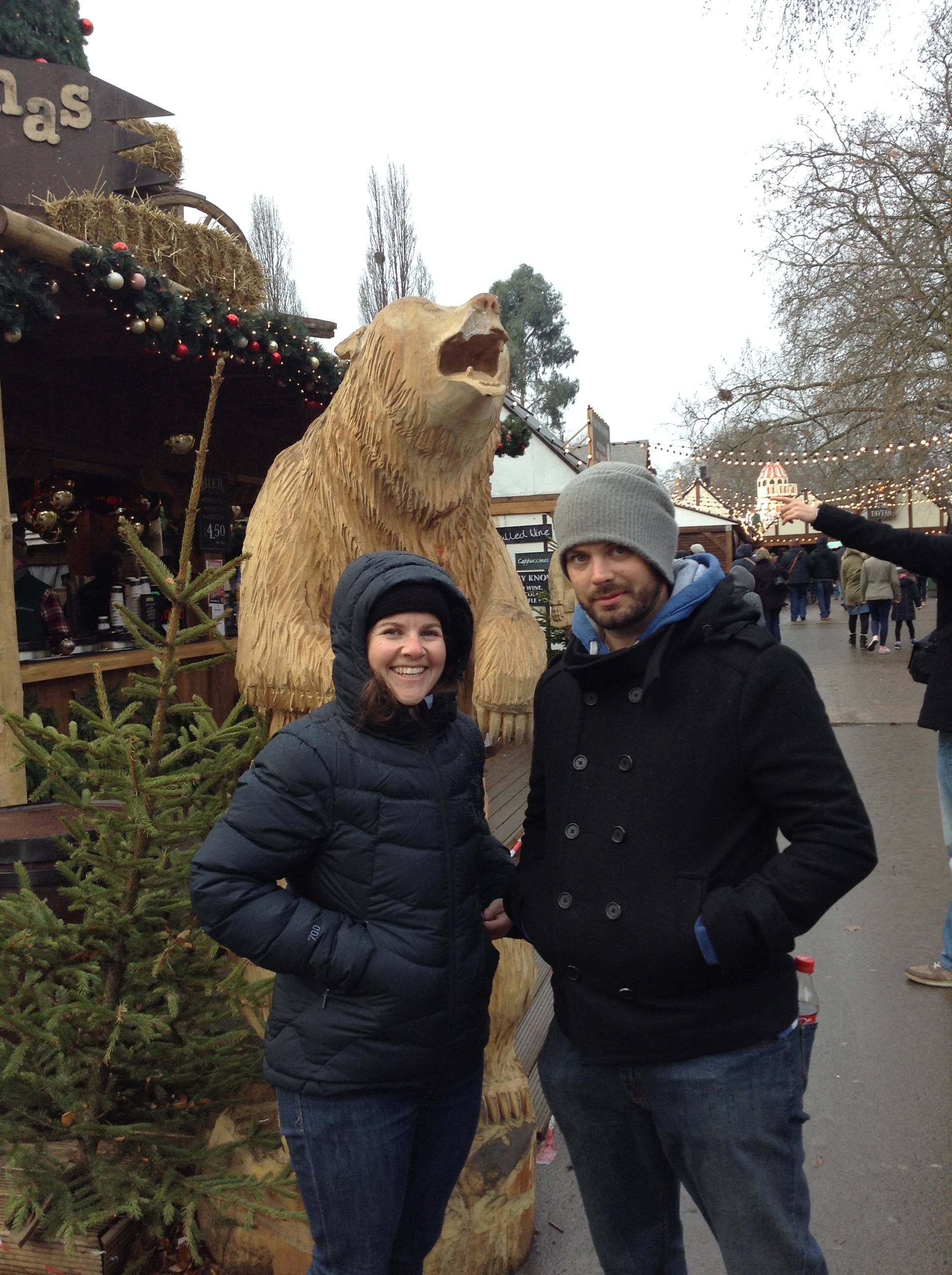 We staggered back to the hotel with our fitbits telling us we had walked almost 30km. A short sleep, and then rugged up in coats, gloves, hats and scarves we caught the tube to Waterloo to the gorgeous Christmas market on Southbank. Sitting just beneath the London Eye all lit up in blue, the trees twinkling with thousands of fairy lights, Mariah and Buble crooning everywhere we walk, and the freezing cold being warded off with mulled cider in the cedar chalet – it definitely feels like Christmas.
